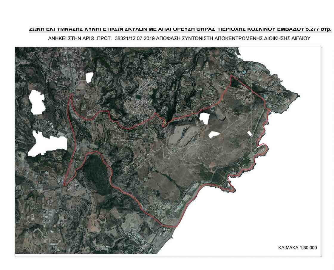 “….Καθορίζουμε ζώνη εκγύμνασης κυνηγετικών σκύλων (Ζ.Ε.Σ.), στην περιοχή « Κοσκινού» εμβαδού 5277 στρ. που περιγράφεται ως εξής: