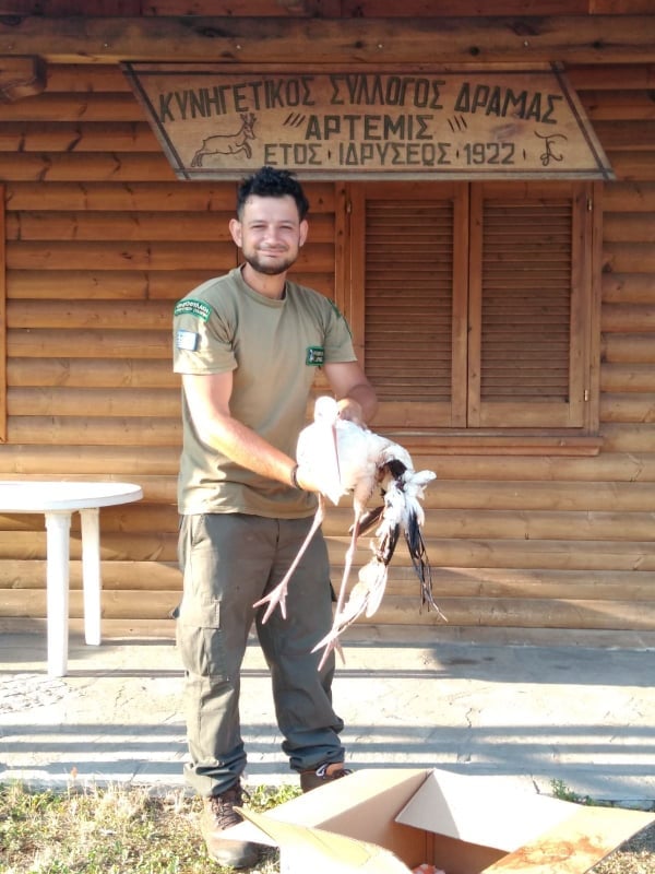 Στις 28-07-2020 πραγματοποιήθηκε από τον ιδιωτικό φύλακα θήρας του Κυνηγετικού Συλλόγου Δράμας περισυλλογή ενός τραυματισμένου πελαργού, το οποίο εντοπίστηκε στην περιοχή της Αδριανής Δράμας.