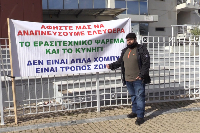 Κυνηγοί των Δυτικών Προαστίων της Αττικής συγκεντρώθηκαν σήμερα έξω από Δημαρχείο του Περιστερίου για να δηλώσουν την αγανάκτησή τους για την άδικη απαγόρευση της μετακίνησης για κυνήγι.