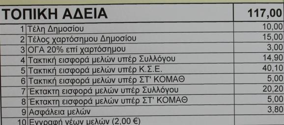 Στη συνέλευση της ΚΟΜΑΘ, εκτός της αύξησης των πέντε ευρώ υπέρ Ομοσπονδίας, αποφασίστηκε ομόφωνα επίσης η επιβολή πρόσθετης εισφοράς υπέρ Συλλόγου, τουλάχιστον στα είκοσι ευρώ, ποσό που εφαρμόζεται εδώ και πολλά χρόνια.