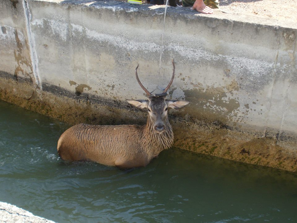 Μετά από κινητοποίηση ομάδας κυνηγών,που επικοινώνησε με Ομοσπ. Θηροφύλακες της Δ’ Κ.Ο.Σ.Ε. και την Πυροσβ. Υπηρεσία (Σταθμός Οινοφύτων),που έσπευσαν άμεσα στην περιοχή,όπως επίσης και το Δασαρχείο Θηβών,κλιμάκιο της ΕΥΔΑΠ και κλιμάκιο από την Τοπική Κοινότητα Αγίου Θωμά Βοιωτίας,σώθηκε ένα νεαρό αρσενικό ελάφι που είχε πέσει μέσα στο κανάλι του Μόρνου.