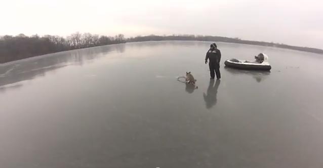 Αποστολή διάσωσης τριών ελαφιών που είχαν παγιδευτεί στην παγωμένη λίμνη Albert Lea στη Μινεσότα οργάνωσαν δυο άνδρες, ιδιοκτήτες μιας οικογενειακής επιχείρησης χόβερκραφτ.