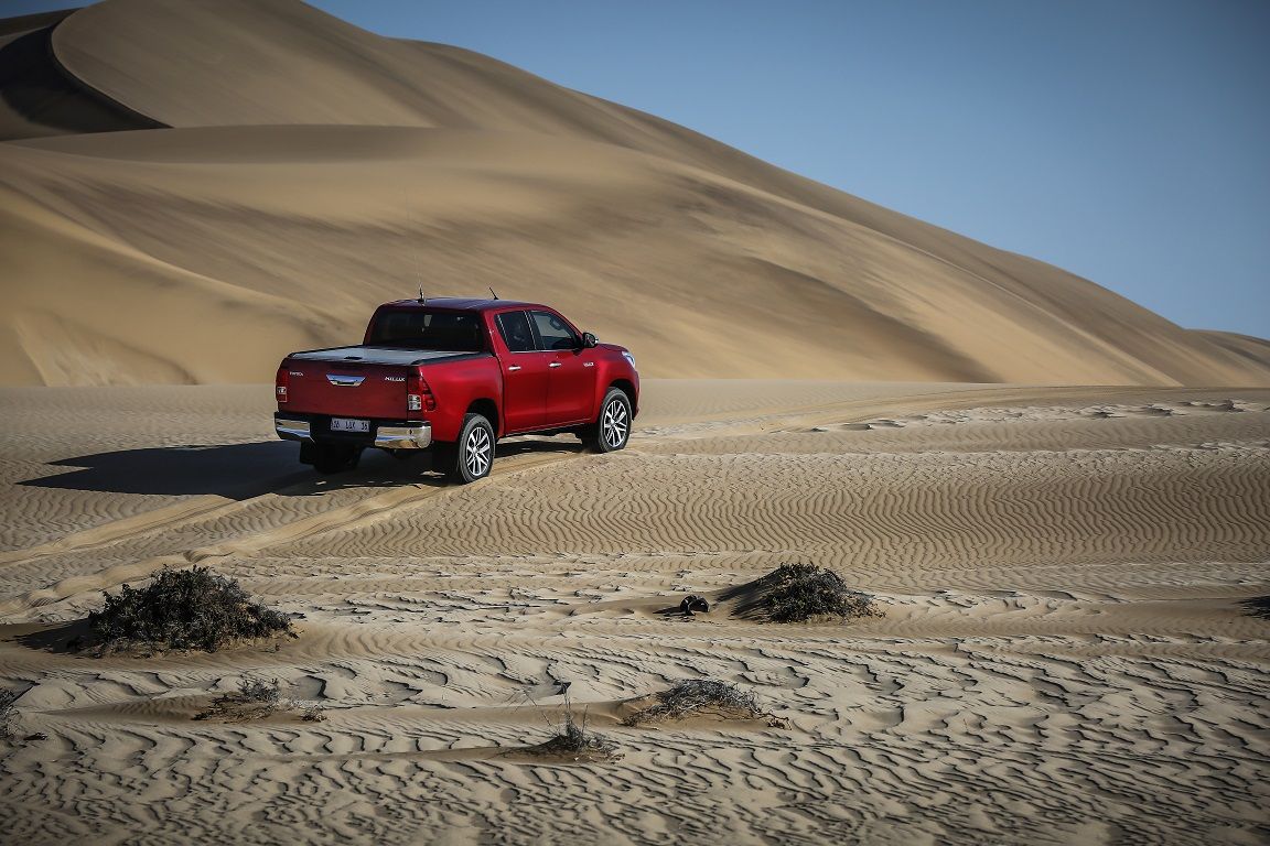 Η διήμερη διαδρομή στη Namibia τα είχε πραγματικά όλα: από έρημο με γιγαντιαίους αμμόλοφους μέχρι κακοτράχαλο βραχώδες μονοπάτι και γρήγορους χωματόδρομους με κατσαρό οδόστρωμα. Και το νέο Hilux τα πέρασε όλα με άνεση, παρόλο που στο κονβόι υπήρχαν πολλοί άπειροι οδηγοί από πρώην Ανατολικές χώρες…