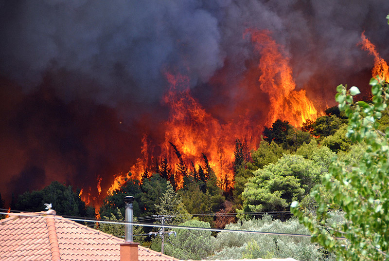 Η βόρεια πλευρά της Ζακύνθου έχει παραδοθεί στις φλόγες, που έχουν κάψει χιλιάδες στρέμματα πευκοδάσος και ελαιώνες, ενώ προκάλεσαν ζημιές σε αποθήκες και άλλα οικήματα. Εν τούτοις, δεν έχουν καταγραφεί προς το παρόν καταστροφές σε σπίτια, σύμφωνα με τις αρχές.