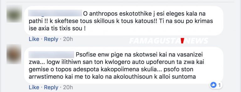«Ψόφησε ενώ πήγε να σκοτώσει και να βασανίσει ζώα… λόγω ηλίθιων σαν τον κ*λογερο αυτό υποφέρουν τα ζώα και γέμισε ο τόπος αδέσποτα κακοποιημένα σκυλιά… ψόφο στον αρρωστημένο και με το καλό να ακολουθήσουν και άλλοι σύντομα»