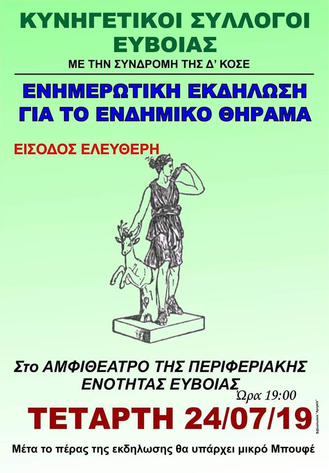 655 Ενημερωτική εκδήλωση πραγματοποιούν οι Κυνηγετικοί Σύλλογοι Εύβοιας την Τετάρτη 24 Ιουλίου με θέμα το ενδημικό θήραμα. Η εκδήλωση θα πραγματοποιηθεί στο Αμφιθέατρο της Περιφερειακής Ενότητας Εύβοιας στις 19.00 μ.μ. ΔΚΟΣΕ iHunt Το iHunt.gr είναι online περιοδικό που ασχολείται με το κυνήγι και τη φύση. www.ihunt.gr προηγούμενη ανάρτηση Εντυπωσιακή η συμμετοχή στην ηλεκτρονική σήμανση σκύλων του ΚΣ Θεσσαλονίκης επόμενη ανάρτηση Επεισόδιο στον Εβρο: Τούρκοι στρατιώτες απείλησαν ψαράδες ΣΧΕΤΙΚΑ ΑΡΘΡΑ Έβρος : Αγριόχοιροι με αφρικανική πανώλη, εντοπίστηκαν πολύ... 6 Νοεμβρίου 2025 Κύπρος : Εξαφανίστηκε το θήραμα – Φωνάζουν οι... 6 Νοεμβρίου 2025 Επίθεση λύκου σε αγγλικό σέττερ στον Ωρωπό Πρεβέζης…VIDEO 6 Νοεμβρίου 2025 Μελέτη Αρκτούρου: Η άναρχη χωροθέτηση ΑΠΕ απειλεί την... 6 Νοεμβρίου 2025 Αγριογούρουνα βόσκουν στο ψυχιατρικό νοσοκομείο στο Δαφνί!…VIDEO 6 Νοεμβρίου 2025 Φρίκη στη Βοιωτία: Αγροτικό έσερνε σκύλο, δεμένο στον... 6 Νοεμβρίου 2025 Καιρός σήμερα: Μικρή πτώση της θερμοκρασίας με βροχές... 6 Νοεμβρίου 2025 Θανατηφόρα επίθεση λύκων σε λαγόσκυλο στη Δράμα 5 Νοεμβρίου 2025 Γ’ ΚΟΠ : Προκήρυξη για την πρόσληψη τριών... 5 Νοεμβρίου 2025 Σκότωσαν τον Echo! Θρήνος για τον σκύλο που... 5 Νοεμβρίου 2025