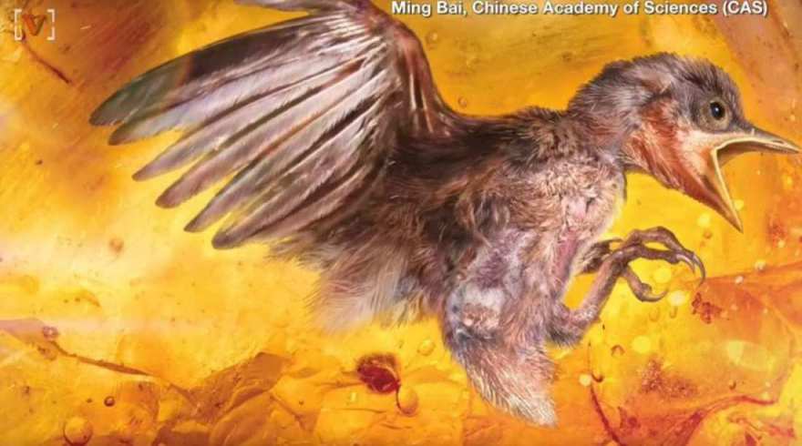 Οι επιστήμονες ανακάλυψαν ένα αυτούσιο πτηνό παγιδευμένο σε ένα μεγάλο κομμάτι κεχριμπαριού, ηλικίας 99 εκατ. ετών.