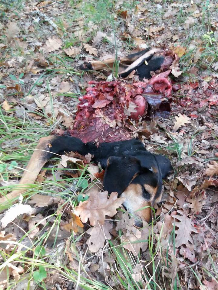 Εκείνη την στιγμή νόμιζα ότι τον χτύπησε κάποιο γουρούνι γιατί το gps έδειχνε συνεχώς κινήσεις 5 με 10 μέτρα. Μας πήρε 20′ περίπου να φτάσουμε στο σημείο λόγω του δύσβατου της περιοχής για να αντικρίσουμε τον Μπόμπι κατασπαραγμένο όπως φαίνεται στην φωτογραφία.”