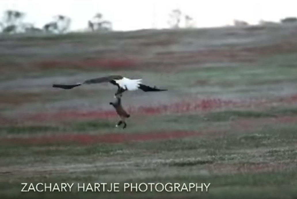 Νεαρή αλεπού έχει πιάσει λαγό και τον κρατά σφιχτά στο στόμα της όταν ένας αετός αποφασίζει να μπει στη μέση. Αρπάζει αλεπού και λαγό και πετά μακριά. Λιγη ώρα αργότερα, η αλεπού πέφτει στο έδαφος αφήνοντας το νεκρό ζώο από το στόμα της.