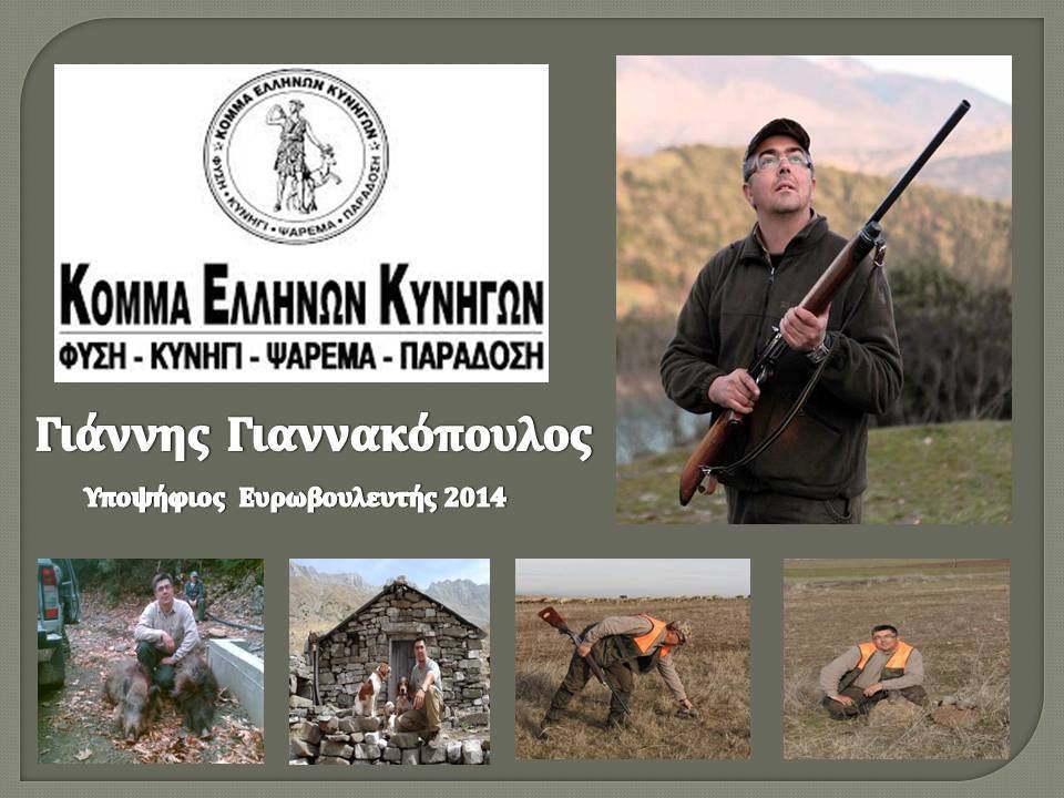 Ο Γιάννης κατάγεται από τη Ναύπακτο και είναι φανατικός κυνηγός και κυνόφιλος και είμαι πολύ χαρούμενος που είναι φίλος και συνκυνηγός μου. Δεν θα χρειαστεί πάνω από πέντε λεπτά για να καταλάβει κάποιος τι σημαίνει για τον Γιάννη το κυνήγι. Άνθρωπος χαμηλών τόνων που του αρέσουν τα έργα και όχι τα λόγια, κατέβηκε υποψήφιος χωρίς τυμπανοκρουσίες και μεγάλα λόγια έχοντας σαν κύριο όπλο του την ΚΥΝΗΓΕΤΙΚΗ ΗΘΙΚΗ κάτι που σπανίζει στις ημέρες μας.
