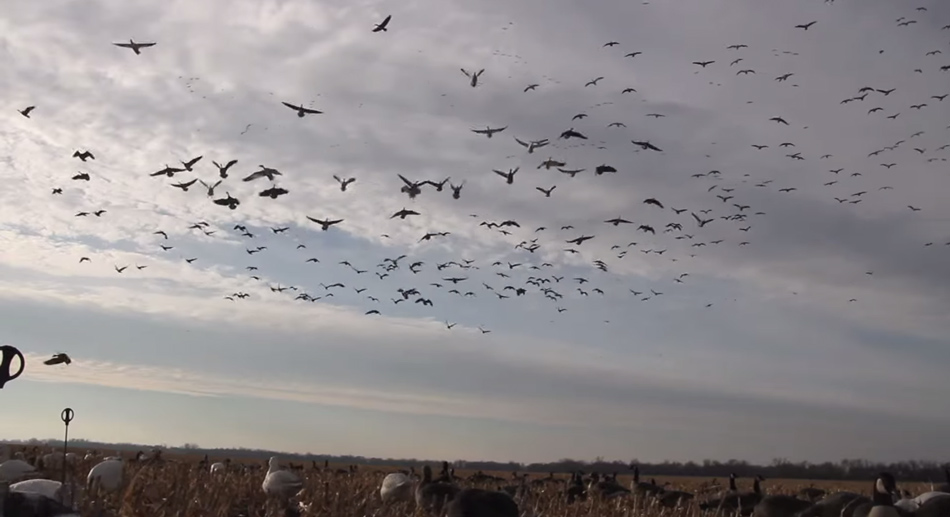 Ένα άκρως εντυπωσιακό μεικτό κυνήγι Καναδέζικης αγριόχηνας και χιονόχηνας με φόντο τις καλλιέργειες του Κάνσας. Ο όγκος των εισερχόμενων πουλιών είναι απλά απίστευτος και δεν θα ήταν καθόλου υπερβολή αν το χαρακτηρίζαμε ως ένας ουρανός πουλιά.