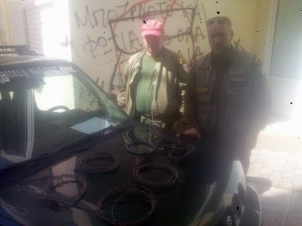 Ούτε ένα ούτε δύο αλλά εννέα βρόγχους που είχαν στηθεί για σύλληψη αγριόχοιρων εντόπισαν και κατέστρεψαν οι θηροφύλακες του Κ.Σ.Κοζάνης , Μπουνόβας Δημήτριος και Παπαδόπουλος Νικόλαος σε δασική περιοχή της ζώνης ευθύνης μας.