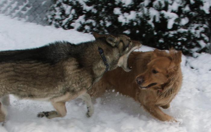 Σε δυο τρία λεπτά είδα το κουτάβι να έρχεται προς το μέρος μου τρομοκρατημένο και να τρέμει !!! Το φώναξα κοντά μου και το έψαξα για τυχόν σκισίματα η άλλο τραυματισμό, ευτυχώς δεν είχε αλλά στον σβέρκο του είχε πολλά σάλια από την προσπάθεια να το πνίξουν !!! Ήταν τέτοιος ο πανικός του που ενώ είχα αρπάξει τα 2 μεγάλα και ανηφόριζα κακήν κακώς προς το αυτοκίνητο και ενώ φώναζα το όνομα του και το καλούσα να με ακολουθήσει, παρ ότι τους έχω σιδηρά πειθαρχία αυτό πήγε προς την αντίθετη πλευρά από εκεί που πήγαινα, από την τρομάρα που είχε πάρει (κάτι σαν το πανικό που παθαίνουν τα πρόβατα σε επίθεση λύκου). Κλείδωσα γρήγορα τα δυο μεγάλα στο αυτοκίνητο και ξανά τον κατήφορο να βρω τον μικρό συνεχίζοντας να φωνάζω και να τουφεκάω !!!