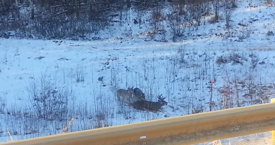 Δυστυχώς για αυτούς η ίδια η φύση συχνά πυκνά τους διαψεύδει με τον χειρότερο τρόπο.Στο παρακάτω βίντεο που τραβήχτηκε στην Αλμπέρτα του Καναδά από έναν εργάτη πετρελαϊκής εταιρίας δύο λύκοι κατασπαράσσουν ΖΩΝΤΑΝΟ ένα ενήλικο αρσενικό ελάφι ακριβώς κάτω από τον δρόμο. Δείτε το βίντεο ….