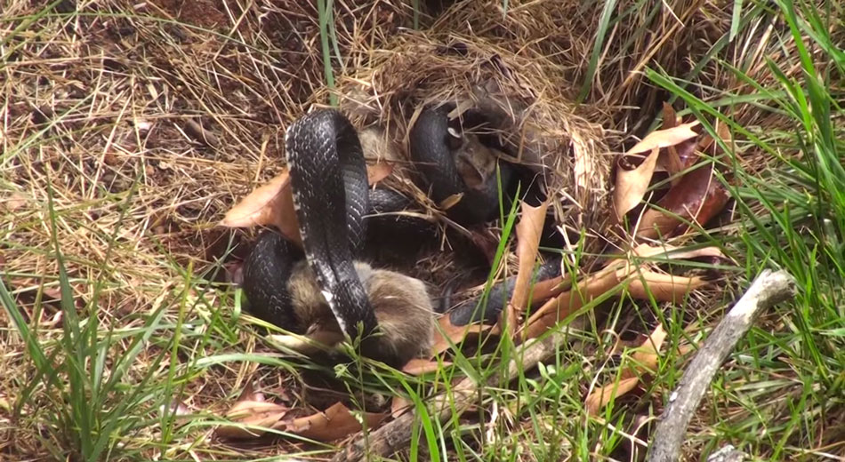 Μια γενναία κουνέλα υπερασπίζεται τα μικρά της όταν βλέπει ένα φίδι να έχει εισβάλλει στη φωλιά του.