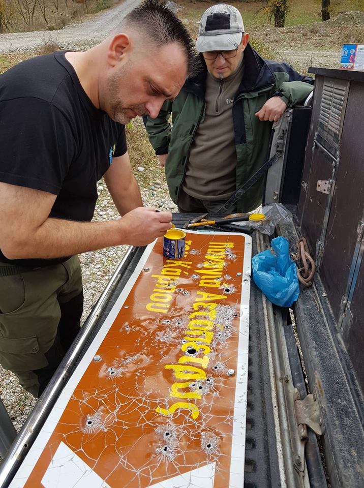 Ο Κυνηγετικός Σύλλογος Κόνιτσας φρόντισε για την προσωρινή επισκευή της πινακίδας της Παναγίας της Αετόπετρας, που είχε πυροβολήσει οπλοφόρος, έως την αντικατάστασή της.