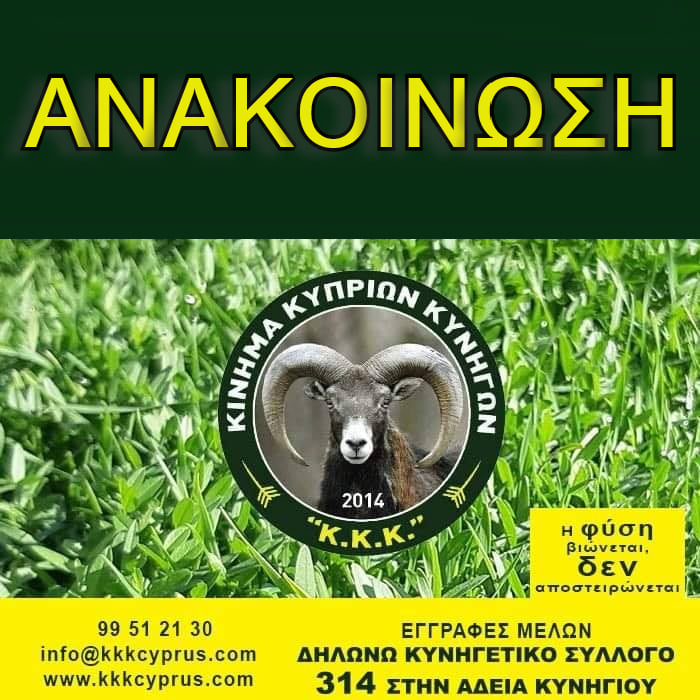 Το σωματείο μας K.K.K. (Κίνημα Κυπρίων Κυνηγών) παρακολουθεί πολύ στενά εδώ και 1 μήνα περίπου με αρκετή λεπτομέρεια τα συμβάντα στους αδελφούς μας κυνηγούς και κυναγωγούς στην Ελλάδα και θα θέλαμε να ξέρετε ότι: το σωματείο μας είναι και θα είναι δίπλα σας σε ότι χρειαστείτε οποιανδήποτε στιγμή.