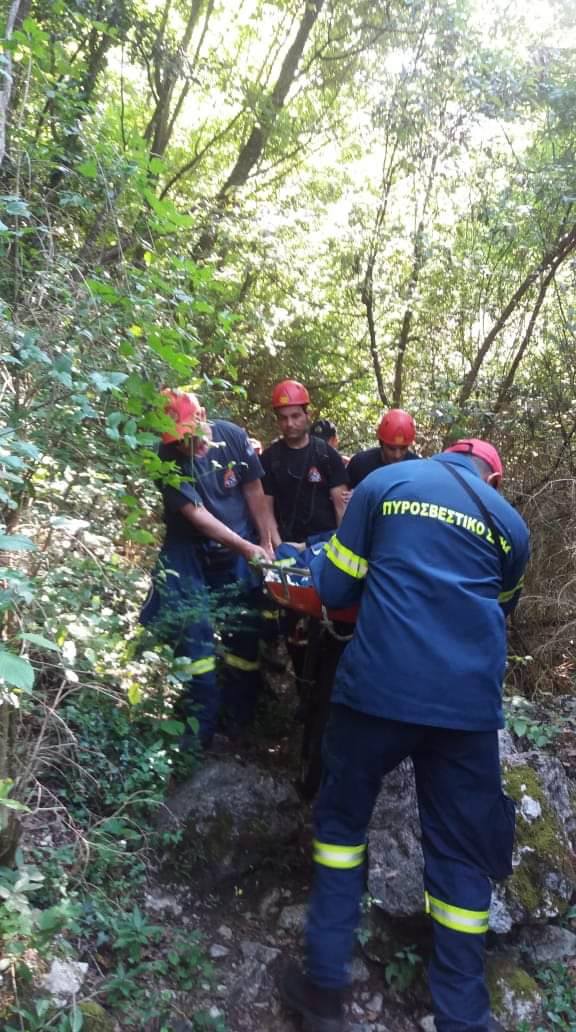 Οι πυροσβέστες προσέγγισαν με πεζοπορία τον τραυματία, ο οποίος είχε τραυματιστεί ύστερα από πτώση μέσα στην κοίτη του ρέματος και τον μετέφεραν με φορείο, ακολουθώντας το ίδιο δύσβατο μονοπάτι από το οποίο έγινε η προσέγγισή του, στο δρόμο Δίου – ορειβατικού καταφυγίου Κορομηλιάς, στη θέση «Άγιος Κωνσταντίνος», για την παραλαβή του από ασθενοφόρο του Ε.Κ.Α.Β.