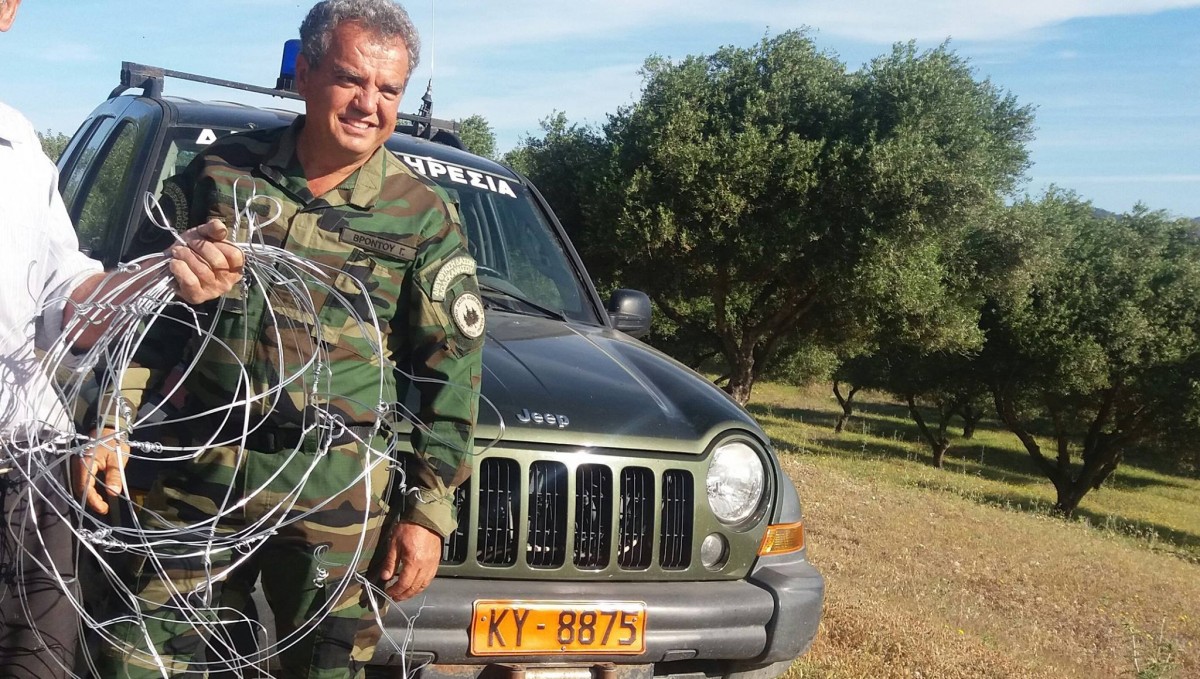 Σήμερα το πρωί και περί ώρα 7;30 εντοπίστηκε από Δασοφύλακες της ανωτέρω Υπηρεσίας να ελέγχει τις συρμάτινες θηλιές που είχε τοποθετήσει παράνομα σε μορφή παγίδων, με σκοπό την σύλληψη αγρίων ζώων.