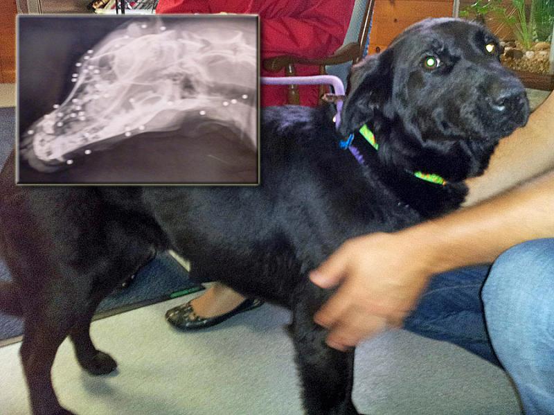 Μία ακτινογραφία αποκάλυψε 50 σκάγια τύπου BB στο κεφάλι του λαμπραντόρ και άλλη έδειξε ότι πολλά ακόμα υπήρχαν διάσπαρτα στο σώμα του. Σύμφωνα με τον Dr Domeyer το σκυλί φαίνεται να είναι χαρούμενο, αλλά οι κτηνίατροι θα συνεχίσουν να το παρακολουθούν ώστε να αποκλείσουν μελλοντικές παρενέργειες.