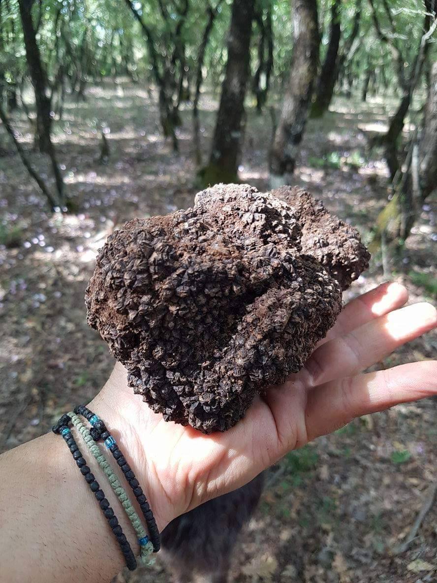 Ενα πραγματικά σπάνιο κομμάτι, το οποίο βρήκε ο κυνηγός τρούφας Σπύρος Τσιροβασίλης μαζί με τον Γιώργο Αδαμόπουλο, το Σάββατο, αναζητώντας τρούφες μαζί με τα σκυλιά τους, στους μανιταρότοπους της Μεσσηνίας.