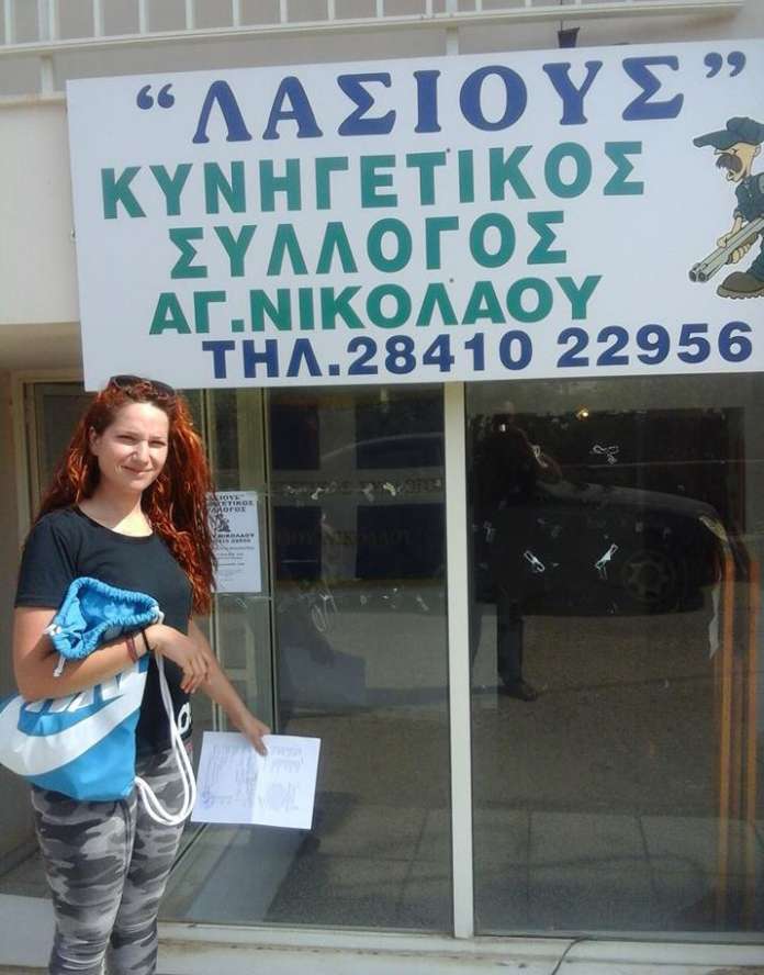 Όταν γράφουμε τη λέξη κυνηγός πάντα την συνδυάζουμε με…. αρσενικό άρθρο καθώς οι κυνηγοί είναι συνήθως άνδρες. Όμως, όχι πια! Ο Κυνηγητικός Σύλλογος Αγίου Νικολάου, προ ημερών, εξέδωσε την πρώτη άδεια κυνηγού σε γυναίκα του Μεραμπέλλου. Είναι η Λιάνα Κουργιαντάκη από τα Μέσα Λακώνια, η πρόεδρος του τοπικού Πολιτιστικού Συλλόγου. Την είδαμε να ποζάρει πανευτυχής, έξω από τα γραφεία του Συλλόγου με την άδεια στα χέρια της: