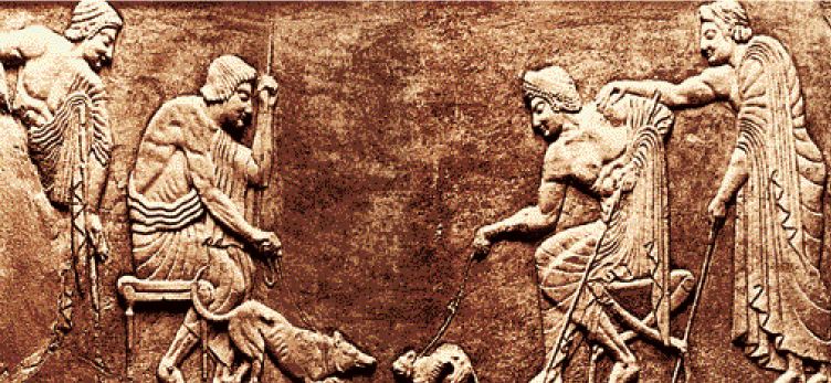 Mία από τις σημαντικότερες ενδείξεις για αυτήν την σχέση αγάπης και συντροφιάς μεταξύ των αρχαίων Ελλήνων με τους σκύλους, που διαρκεί πάνω απο 3.000 χρόνια, μας την δίνει ο πατέρας της Ελληνικής ιστορίας Όμηρος στην Οδύσσεια (ραψωδία ρ΄300-309), όπου περιγράφει το γνωστό και συγκινητικό περιστατικό του θανάτου του σκύλου του Οδυσσέα (ονόματι Άργος) τη στιγμή που αναγνωρίζει τον αφέντη του ντυμένο ζητιάνο, που γύρισε μετά από 10 έτη απουσίας.