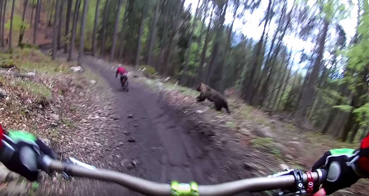 Καθώς ο Dusan έκανε mountain bike σε δάσος της Σλοβακίας με έναν φίλο του, δεν μπορούσε να πιστέψει στα μάτια του όταν ξαφνικά μια αρκούδα εμφανίστηκε από το πουθενά και άρχισε να κυνηγάει τον προπορευόμενο ποδηλάτη.