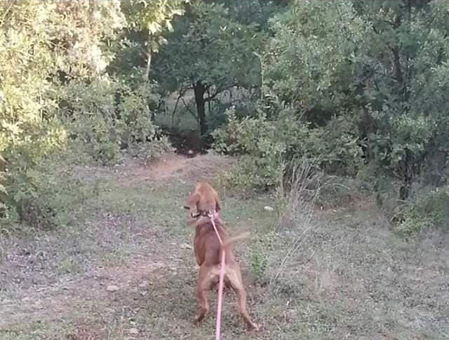Τα 3 σκυλιά είχαν σηκώσει ένα γουρούνι ενώ ο Γιώργος παρακολουθούσε από κάποια απόσταση την εξέλιξη της καταδίωξης, όταν κάποια στιγμή βλέποντας στο Gps τα σκυλιά να απομακρύνονται, αποφάσισε να τα κόψει και να τα μαζέψει.