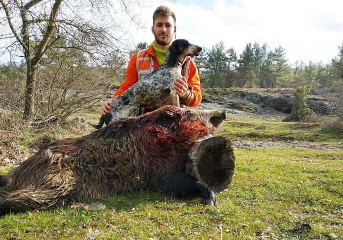 Συγκεκριμένα πρόκειται για την Πέπη 4 ετών, Μπλε της Γασκώνης, την οποία έβγαλε η παρέα του Γιώργου το πρωί της Κυριακής 18/10/2020 στην περιοχή Αρχάγγελος για κυνήγι αγριόχοιρου.