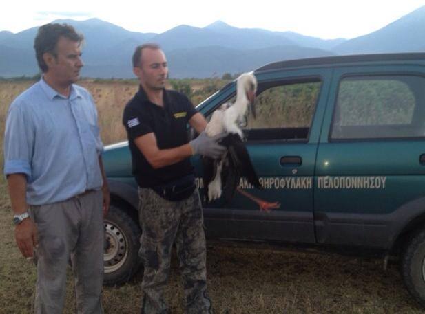 Εξαντλημένος και ταλαιπωρημένος εντοπίστηκε ένας πελαργός στο χωριό Στάδιο Τεγέας από κατοίκους της περιοχής. Οι κάτοικοι αμέσως ειδοποίησαν τον Κυνηγετικό Σύλλογο Τρίπολης και σε λίγα λεπτά στο σημείο έφτασε ο Ομοσπονδιακός Θηροφύλακας Νίκος Φούτρης και περισυνέλεξε το πτηνό. Ο πελαργός μεταφέρθηκε στα γραφεία του Κυνηγετικού Συλλόγου Τρίπολης όπου με υπόδειξη των θηραματολόγων της Κυνηγετικής Ομοσπονδίας Πελοποννήσου δέχτηκε τις πρώτες βοήθειες και κατόπιν συνεννοήσεων με τον Πρόεδρο του Συλλόγου κ. Ρουμελιώτη ο πελαργός θα μεταφερθεί στον Φορέα Διαχείρισης Πάρνωνα – Υγρότοπου Μουστού όπου θα τον περιθάλψουν και θα προχωρήσουν σε όλες τις ενέργειες για την επανένταξη του στο φυσικό του περιβάλλον.