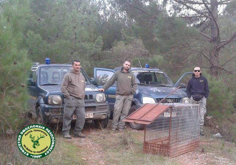 Την Τρίτη 10 Νοεμβρίου 2015 οι Ομοσπονδιακοί Θηροφύλακες (από αριστερά) Κοντογιώργης Σωτήρης, Καρπούζος Γιάννης και Φούτρης Νικόλαος με περιοχή ευθύνης τους Κυνηγετικούς Συλλόγους Καλαβρύτων, Βυτίνας και Τρίπολης, εντόπισαν σε δασική περιοχή του Ανατολικού Μαινάλου στο Λεβίδι Νομού Αρκαδίας μία αυτοσχέδια παγίδα σύλληψης αγριόχοιρων.