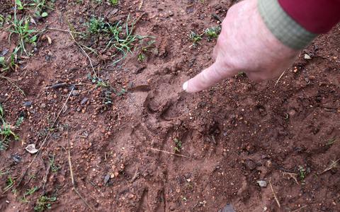 Σ’αυτή τη φωτογραφία μπορείτε να δείτε δύο χαρακτηριστικά ίχνη ενός κάπρου Sus scrofa. Τα αγριογούρουνα θεωρούνται δίχηλα θηλαστικά. Τα δίχηλα θηλαστικά έχουν 4 δάκτυλα: 2 μπροστά και 2 νύχια στο πίσω μέρος (παράνυχοι). Έαν δεν είστε έμπειροι στην ιχνηλασία των αγριογούρουνων, τα παράνυχα είναι μια σοβαρή ένδειξη ότι τα πατήματα που εντοπίσατε ανήκουν σε αγριογούρουνο. Και αυτό γιατί το βάδισμα τους (και το γεγονός ότι τα παράνυχά τους που βρίσκονται χαμηλά στο πόδι)είναι τέτοιο που οι παράνυχοι ακουμπούν στο έδαφος. Έτσι, οι περισσότεροι αγριόχοιροι αφήνουν αποτυπώματα παράνυχου, ενώ τα ελάφια συνήθως δεν το κάνουν.  Αυτά τα ίχνη πιθανότατα είναι από ένα νεαρό αγριογούρουνο γιατί τα μπροστινά δάκτυλα είναι μυτερά και τα στενά. Στους μεγάλους κάπρους είναι πιο πλατιά και λιγότερο μυτερά.