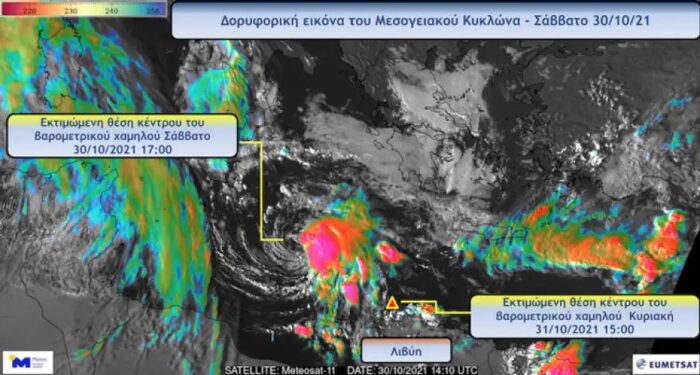 Ο Μεσογειακός Κυκλώνας “Νέαρχος” βρίσκεται αυτή τη στιγμή στην περιοχή της κεντρικής Μεσογείου.