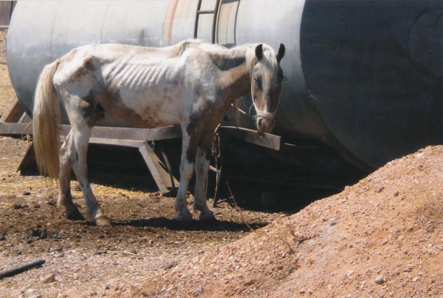 Όπως ανέφερε η κυρία Ρούσσου, ο υποσιτισμός των ζώων αποτελεί βασανιστήριο. «Τα άλογα μπορούν να είναι δεμένα με μακρύ σχοινί για λίγες ώρες την ημέρα, όχι για ημέρες ολόκληρες και με κοντές αλυσίδες. Ήταν 16 ζώα, διασώσαμε τα 12. Τα τέσσερα τα εξαφάνισε και είναι άγνωστη η τύχη τους. Τα δυο από τα 12 δεν μπορέσαμε να τα σώσουμε και πέθαναν από ασιτία. Όλα ήταν σε άθλια κατάσταση. Χρειάζονταν όρους και άμεση περίθαλψη», σημείωσε η ίδια και τόνισε πως ο 72χρονος ιδιοκτήτης της μονάδας είχε καταδικασθεί και στο παρελθόν για αντίστοιχα αδικήματα.
