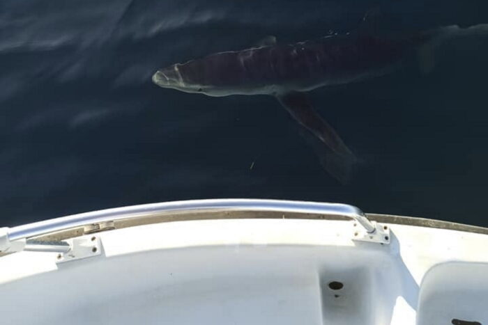 Ο καρχαρίας, δεν φαινόταν μάλιστα να ενοχλείται από την παρουσία του σκάφους.