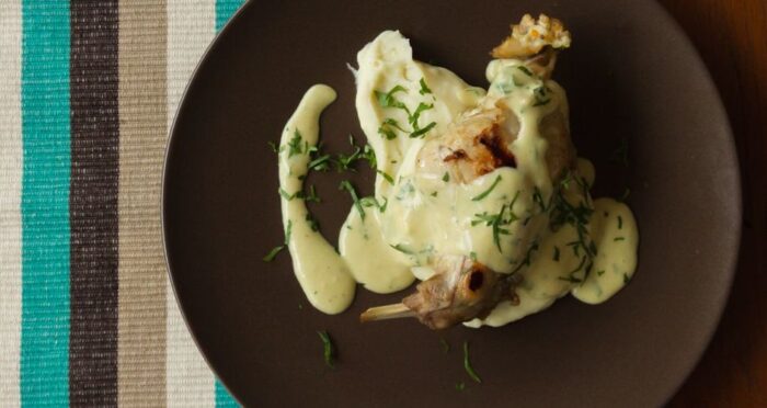 - Προσθέτουμε την κρέμα γάλακτος, την αφήνουμε να πάρει βράση και εκτός φωτιάς, ρίχνουμε τον μαϊντανό και τη μουστάρδα μας.