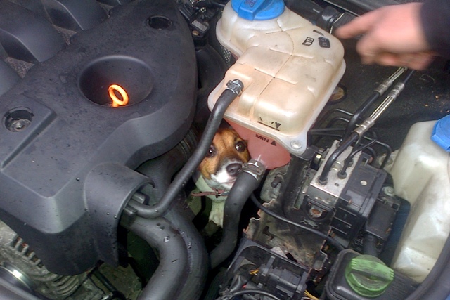 Το 3 μηνών τζακ ράσελ τεριέ με το όνομα Betty Boops κατάφερε να τρυπώσει στη μηχανή του αυτοκινήτου του Gavin Juliette από το Μάντσεστερ.
