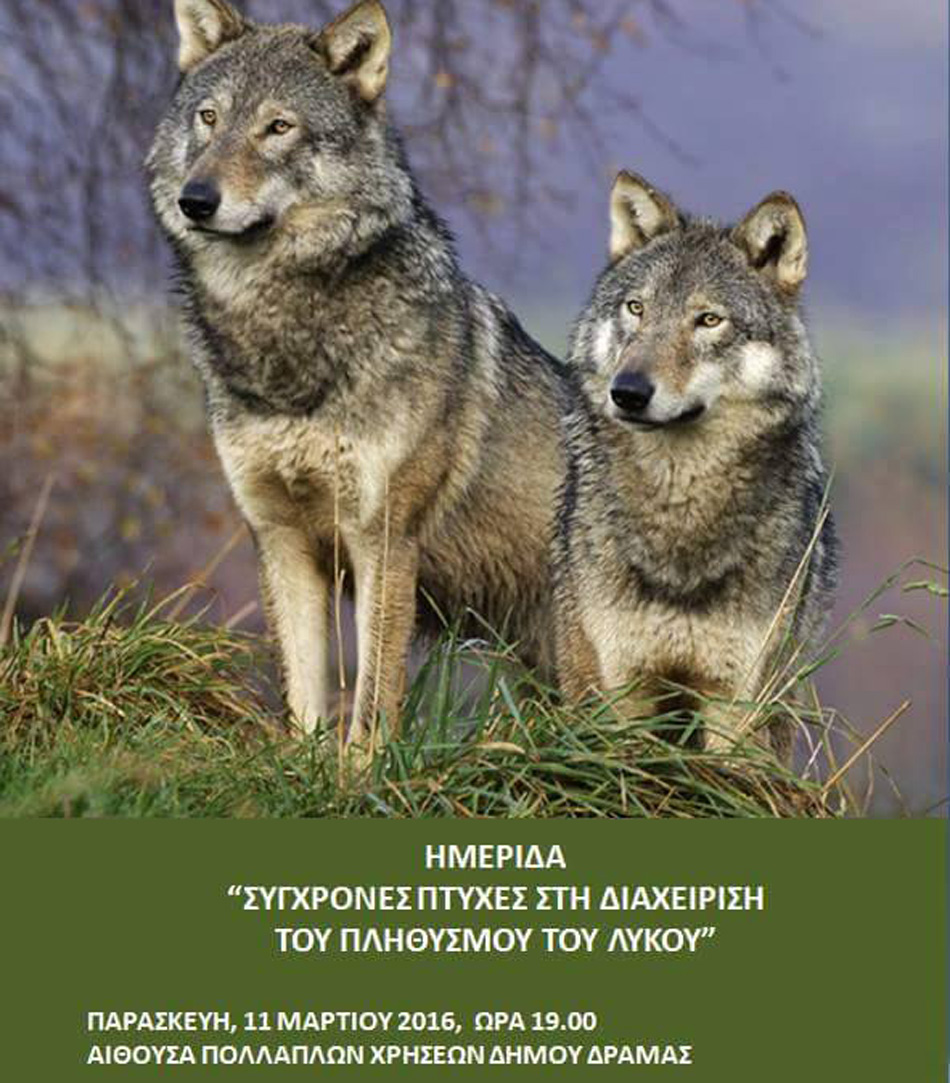 Επίσης θα μιλήσει ο επιστημονικός συνεργάτης της ΣΤ’ ΚΟΜΑΘ Θεοφάνης Καραμπατζάκης καθώς και εκπρόσωποι των κυνηγετικών συλλόγων από τη Βουλγαρία οι οποίοι θα αναλύσουν το τρόπο διαχείρισης του λύκου στη χώρα τους. Η ημερίδα θα πραγματοποιηθεί την Παρασκευή 11 Μαρτίου στην Αίθουσα Πολλαπλών Χρήσεων του Δήμου Δράμας. Για περισσότερες πληροφορίες 25210-34461.