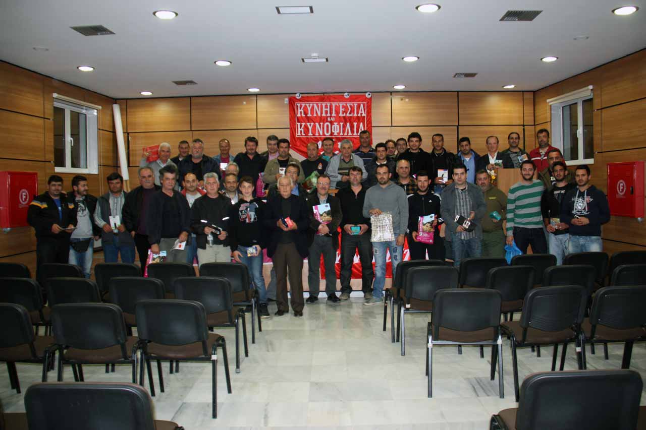 Ομιλητές ήταν, ο Νίκος Λελούδας (εκδότης του περιοδικού εισηγητής με θέμα: Το κυνήγι σήμερα και η σημασία της ενημέρωσης των κυνηγών), ο Νίκος Νικολάου (εισηγητής με θέμα Πουλόσκυλα – Ιχνηλάτες), ο Μηνάς Ιορδάνογλου (εισηγητής με θέμα: Η νομοθεσία περί όπλων, η επιλογή του όπλου και το κυνηγετικό φυσίγγι) και ο Σοφοκλής Κοσκινάς (εισηγητής με θέμα: Ασφαλής χρήση του όπλου και ο σωστός τρόπος σκόπευσης).