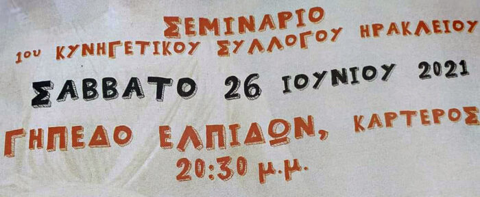 O Κ.Σ. Ηρακλείου διοργανώνει σεμινάριο στις 26 Ιουνίου, στο Γήπεδο Ελπίδων στον Καρτερό, στις 20:30