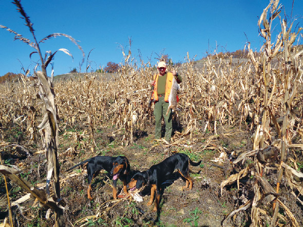 Επεσε μετά από πενήντα μέτρα και τον βρήκα ακολουθώντας τα σκυλιά σε ένα μεγάλο άνοιγμα από πεσμένα φυτά στο κέντρο του χωραφιού. Εκτός από τους λαγούς, οι αρκούδες και τα αγριογούρουνα επισκέπτονται τις καλαμποκιές για το καθημερινό τους γεύμα.