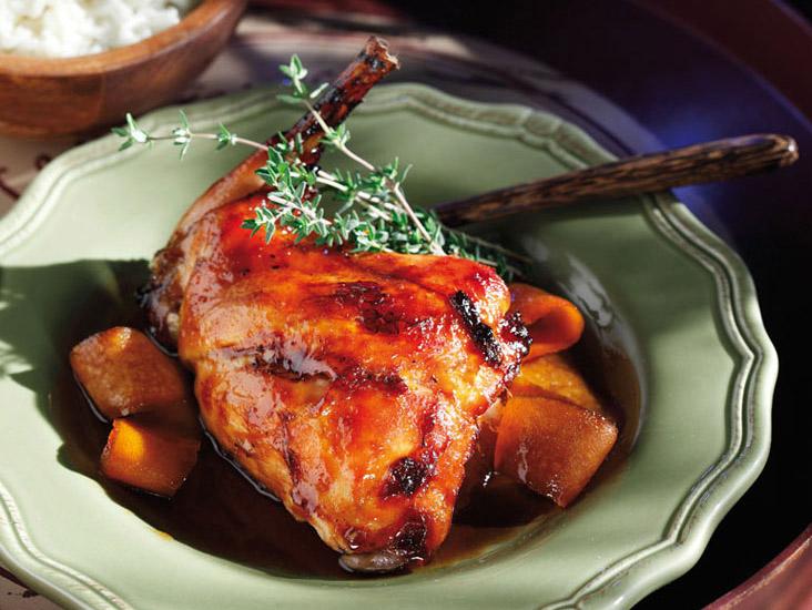 Παίρνουμε το κουνέλι ή το λαγό και το ξεπλένουμε κάτω από άφθονο τρεχούμενο κρύο νερό. Το τοποθετούμε μέσα σε μια ευρύχωρη λεκάνη. Πασπαλίζουμε εξωτερικά και εσωτερικά με το αλάτι, το πιπέρι, το κύμινο και αλείφουμε με το μέλι. Τοποθετούμε στην κοιλιά του τα κρεμμυδάκια πάνω στα οποία έχουμε καρφώσει τα γαρύφαλλα και το σκόρδο. Στρώνουμε τον πάτο μιας ευρύχωρης γάστρας με τα κλαδιά του θυμαριού και τη φλούδα πορτοκαλιού. Τοποθετούμε επάνω το κρέας και περιχύνουμε με το ελαιόλαδο, το κονιάκ και το ξίδι. Σκεπάζουμε και τοποθετούμε στο φούρνο. Ψήνουμε στους 180oC για 3-4 ώρες χωρίς να ανοίξουμε το καπάκι.Σερβίρουμε το λαγό ή το κουνέλι μαζί με τη σάλτσα του και συνοδεύουμε με άφθονη πράσινη σαλάτα ή λευκό ρύζι βουτύρου.