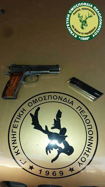 Κατά τον έλεγχο βρέθηκε εντός του οχήματος πάνω στο κάθισμα του συνοδηγού ένα πυροβόλο όπλο (πιστόλι) και δίπλα του μία σφαίρα καθώς επίσης και η γεμιστήρα του όπλου η οποία είχε παραπέσει ανάμεσα στα καθίσματα.