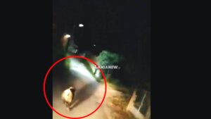 Λίγο μετά τις 23.00 το μεγαλόσωμο ζώο εμφανίστηκε μπροστά τους, μέσα στα σπίτια στην περιοχή του Αφανού. Και ενώ μετά την αρχική θέα του άγριου ζώου θεώρησαν ότι το τελευταίο είχε αποχωρήσει, κατέβηκαν από το όχημα προκειμένου να συνεχίσουν πεζοί.