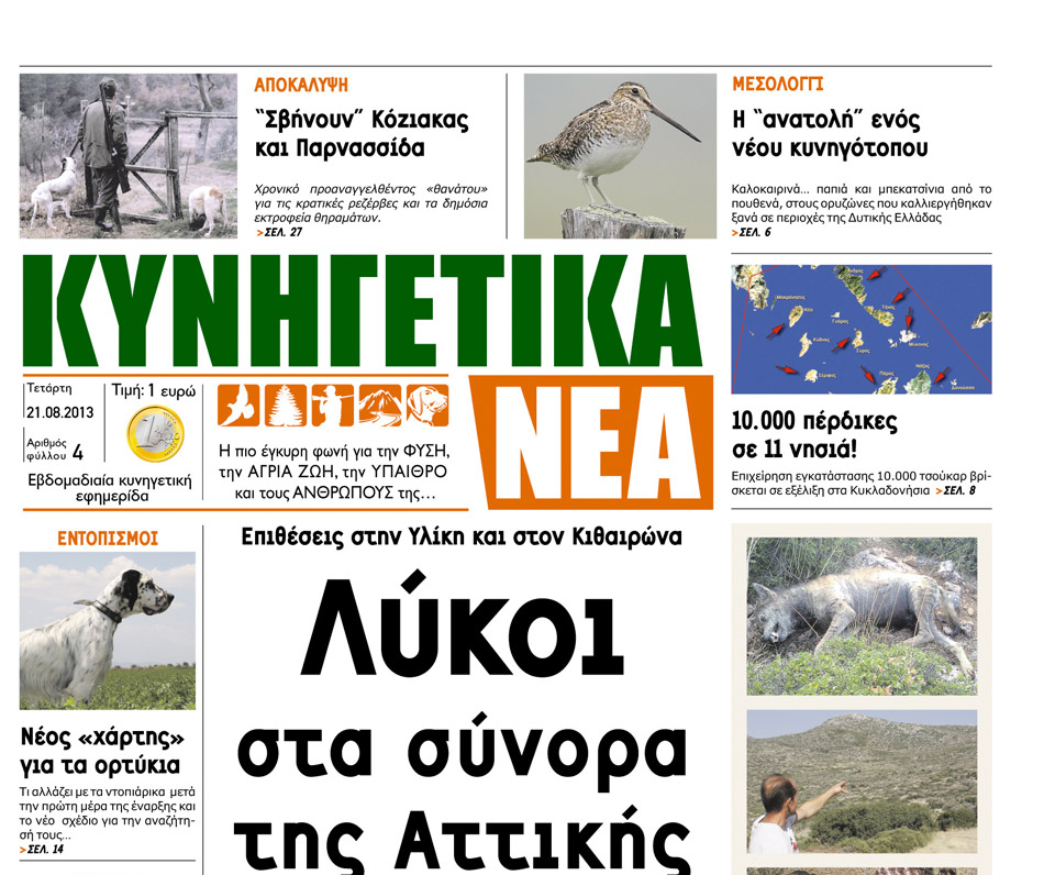 Διαβάστε ακόμη στο τρίτο φύλλο των Κυνηγετικών Νέων που κυκλοφορούν αύριο 21 Αυγούστου και θα παραμείνουν στα περίπτερα μια εβδομάδα :