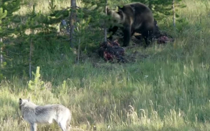Το περιστατικό έλαβε χώρα στο εθνικό πάρκο του Yellowstone στις ΗΠΑ με αφορμή ένα κουφάρι ελαφιού που το διεκδικούσαν όλοι.
