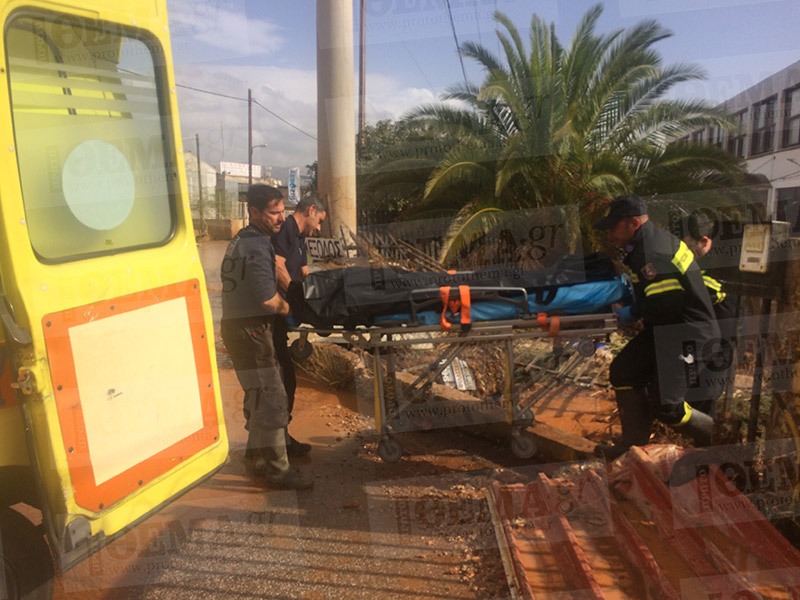 Η συγκλονιστική στιγμή που οι ομάδες διάσωσης περισυλλέγουν την σορό του νεκρού 65χρονου, από εξωτερικό χώρο στην Μάνδρα