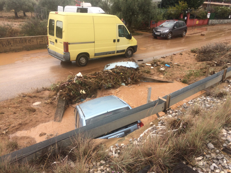 Η ισχυρή βροχόπτωση που ξέσπασε μετά τις 3:30 τα ξημερώματα έχει προκαλέσει πολύ σοβαρά προβλήματα με πλημμυρισμένα σπίτια, κατεστραμμένα αυτοκίνητα, δρόμους-ποτάμια και αρκετούς εγκλωβισμένους καθώς τα ορμητικά νερά έφτασαν σε ορισμένα σημεία το 1,5 μέτρο ύψος.