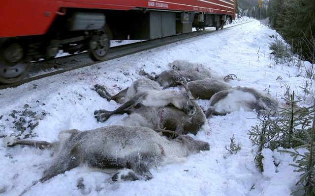 Τα σιδηροδρομικά ατυχήματα με την εμπλοκή ζώων είναι αρκετά συχνά στη Νορβηγία, όπου περισσότερα από 2.000 ζώα, ιδίως ελάφια, τάρανδοι και πρόβατα, σκοτώθηκαν το 2016 σε συγκρούσεις με τρένα.